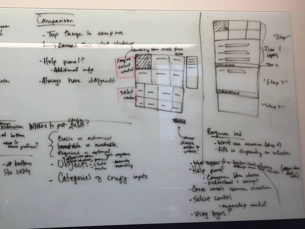 I started at AWS designing core UI elements, but quickly saw that a visual library wasn’t enough. With 200+ siloed service teams, users faced inconsistent, confusing console experiences. I took the initiative to audit key workflows—like resource creation—to expose and map the fragmentation.