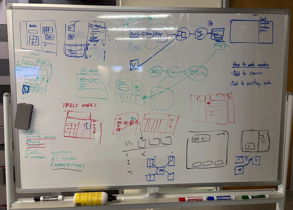 I see myself as a facilitator of idea generation, bringing in diverse perspectives. For Lakeflow Designer, I led brainstorming sessions with devs, PMs, and designers—like this whiteboarding session mapping when users explore data vs. apply transformations.