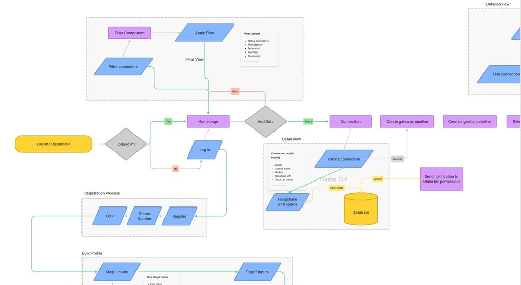 LakeFlow needed to work in harmony with existing Databricks components like Unity Catalog and DLT without duplicating functionality, so I focused on designing clear integration points and visual cues to reinforce the system’s connectedness.