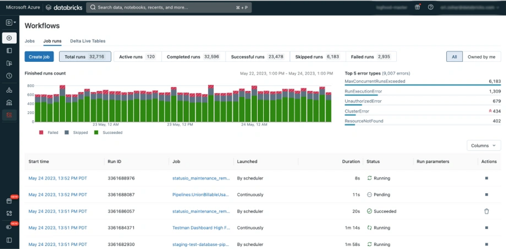 LakeFlow gave users visibility into pipeline performance with real-time task status, logs, and debugging features directly in the UI—helping teams quickly diagnose issues, iterate faster, and build trust in their workflows.