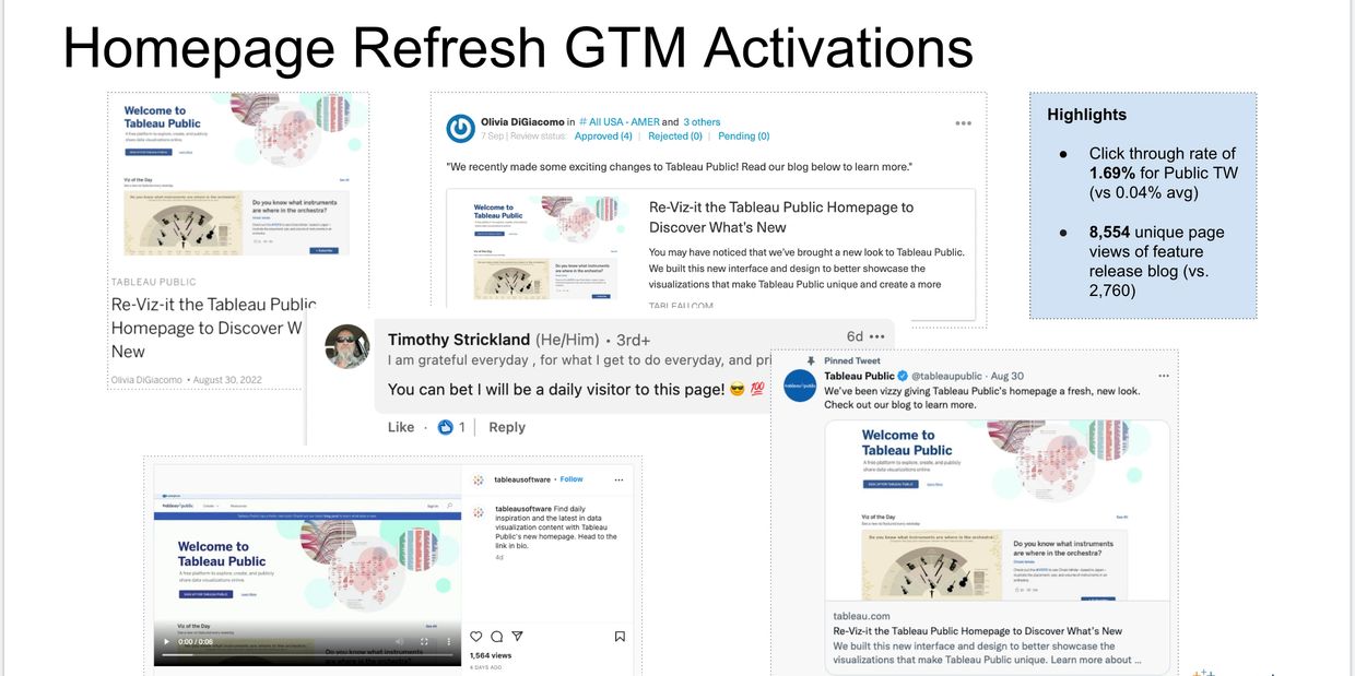 Tableau Public was jointly owned by Marketing and Product, creating healthy tension between brand and UX goals.